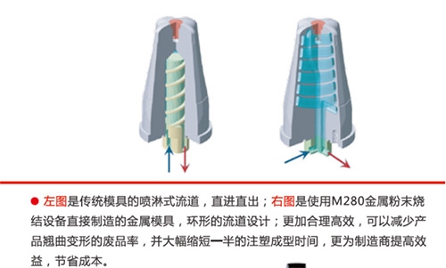 ● 直接烧结金属模具,包括内部的异形流道和模具外壳,如注塑模具、压铸模具、拉伸模具。
